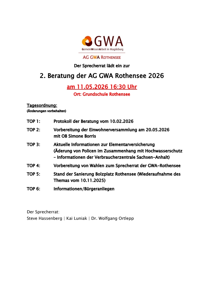 Die Termine der Arbeitsgemeinschaft Gemeinwesenarbeit Magdeburg Rothensee.